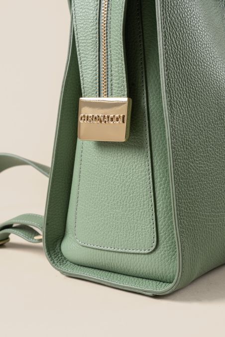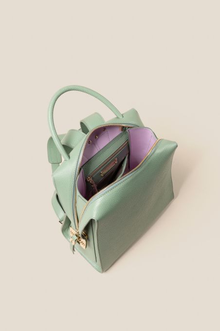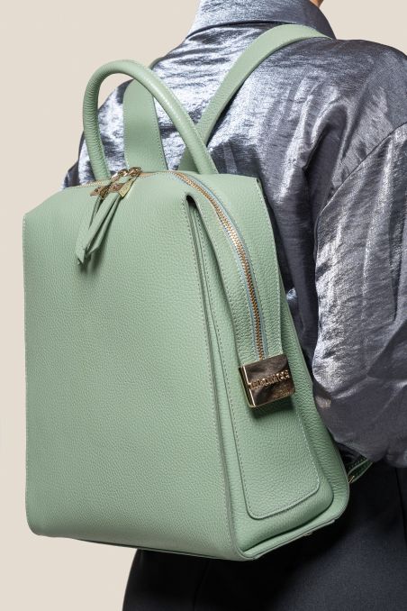 Zaino compatto, perfetto per il tempo libero e per il lavoro. Il modello è realizzato in preziosa pelle di vitello bottalato accoppiata internamente con pellame di colore a contrasto.