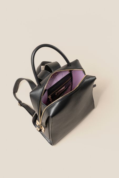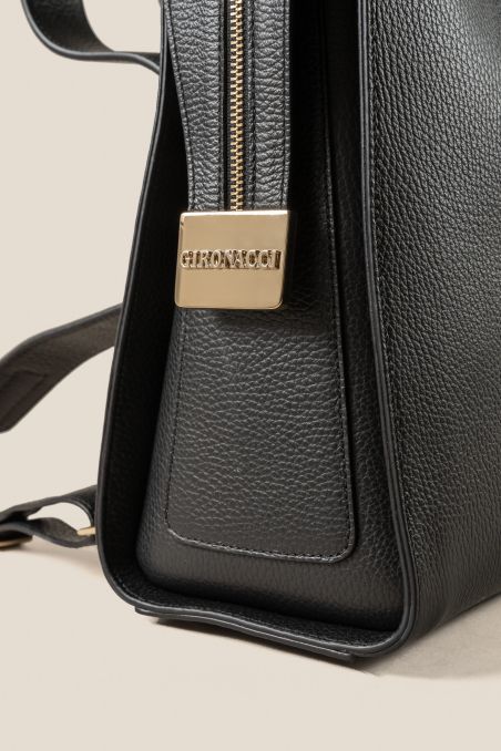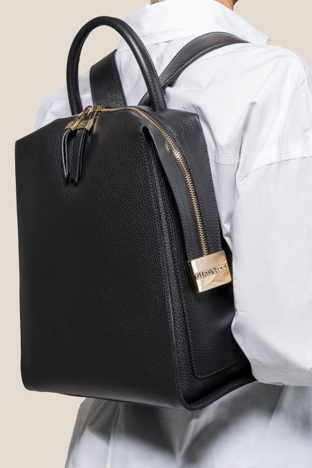 Zaino compatto, perfetto per il tempo libero e per il lavoro. Il modello è realizzato in preziosa pelle di vitello bottalato accoppiata internamente con pellame di colore a contrasto.