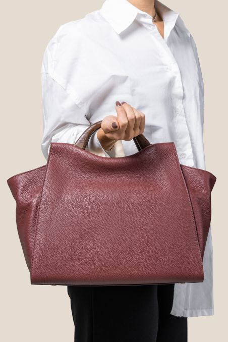 Maxi bag a mano, testimonial delle borse Gironacci. Interamente lavorata in Italia, pratica e raffinata con tracolla regolabile e rimovibile .