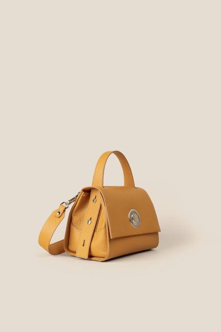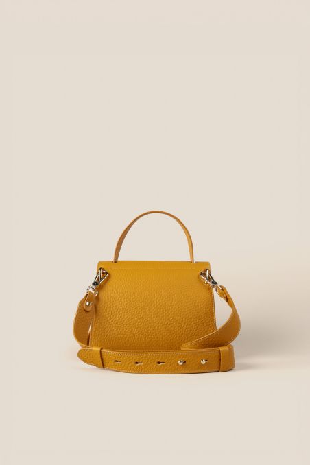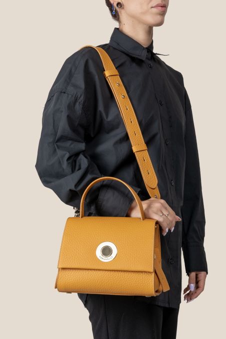 Tracolla removibile in pelle e regolabile in lunghezza per un utilizzo sia a mano che a spalla.