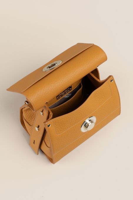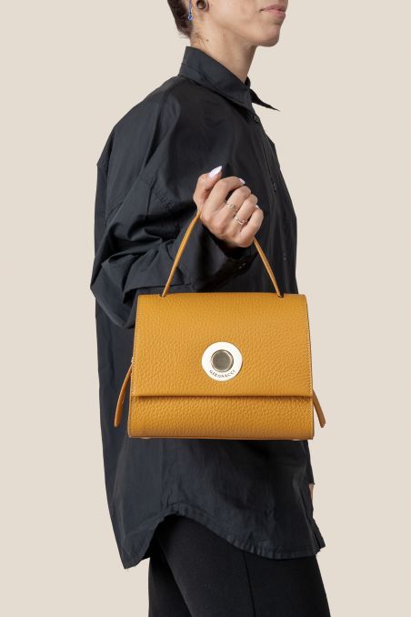 Bauletto timeless di Gironacci Pelletterie realizzata in preziosa pelle di vitello bottalato pieno fiore con particolare rifinizione double face tono su tono all'interno.