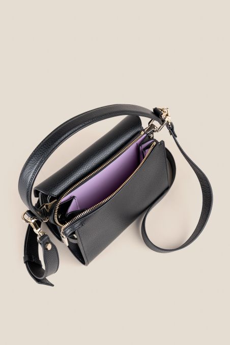 Possibilità di indossarla anche come cross body, grazie alla tracolla in pelle, regolabile in lunghezza.