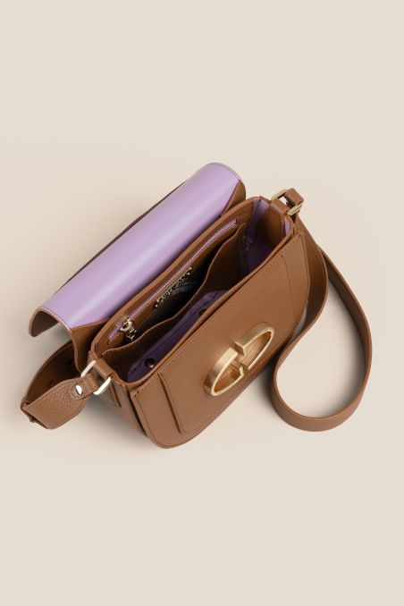 Cross Body realizzata in preziosa pelle di vitello bottalato accoppiata internamente con pellame di colore a contrasto, dotata di tracolla regolabile in pelle.