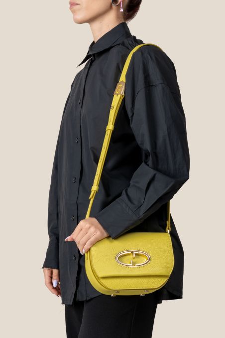 Cross Body realizzata in preziosa pelle di vitello bottalato accoppiata internamente con pellame di colore a contrasto, dotata di tracolla regolabile in pelle.