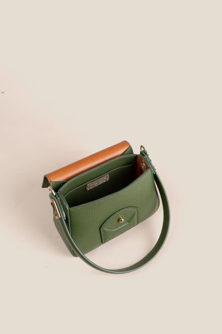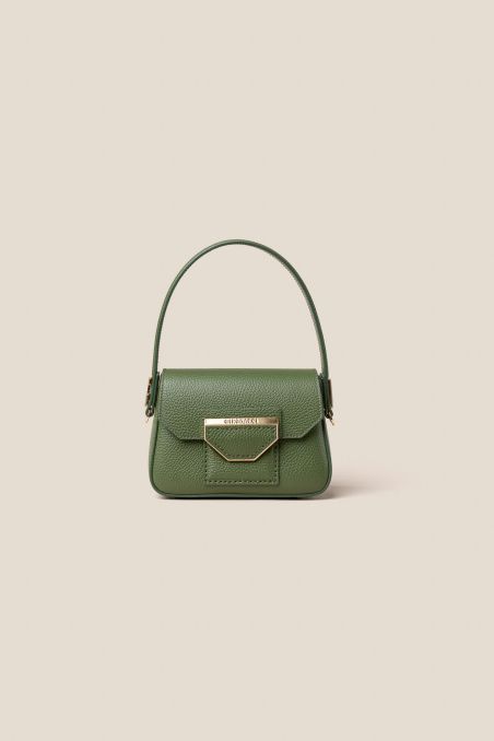 Mini Bag realizzata in preziosa pelle di vitello semilucida dalla grana incisa regolare, corposa e piena al tatto, accoppiata internamente con pellame di colore a contrasto, chiusura con patta calamitata.