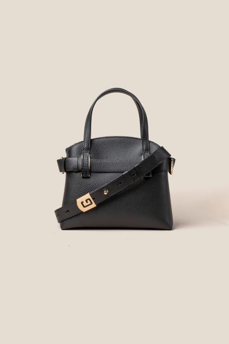 Possibilità di indossarla anche come crossbody, grazie alla tracolla in pelle, regolabile in lunghezza.