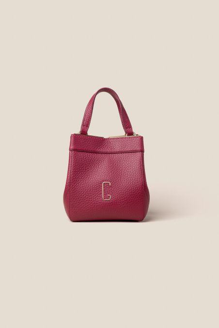 Borsa a mano in pelle di vitello bottalato pieno fiore con particolare rifinitura double face tono su tono all'interno.