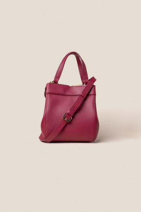Tracolla removibile in pelle e regolabile in lunghezza per un utilizzo sia a mano che a spalla.
