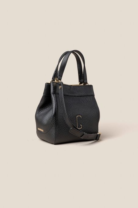 Tracolla removibile in pelle e regolabile in lunghezza per un utilizzo sia a mano che a spalla.