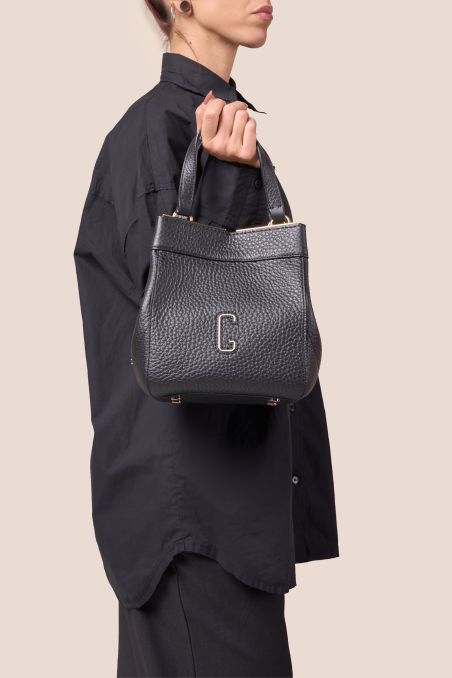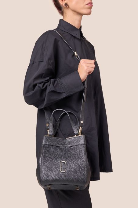 Borsa a mano in pelle di vitello bottalato pieno fiore con particolare rifinitura double face tono su tono all'interno.