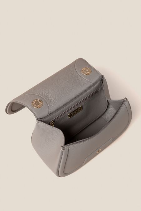 Borsa a mano realizzata artigianalmente in vera pelle bottalata italiana, con una struttura compatta e linee morbide dal design moderno e femminile.